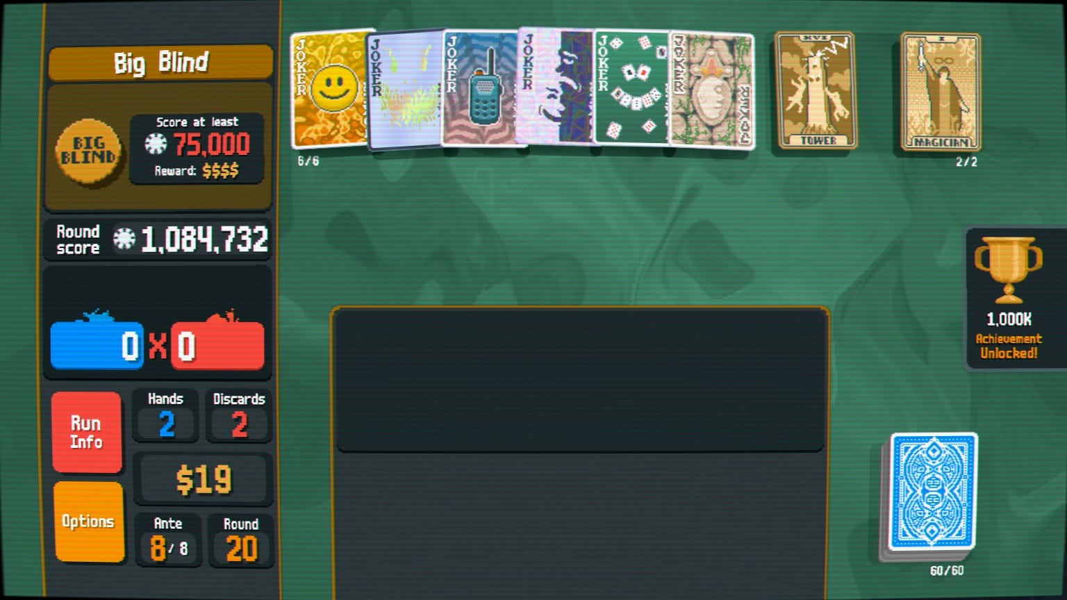My only real critique is that it feels very dependent on RNG at times. Some of the higher difficulties scale at speeds that make it hard to keep up if you don’t have the correct jokers, and getting a good build depends a lot on luck. Along with that, you can have the perfect build but then get blindsided by a boss that negates it completely. I admit that I’m not the best card game player out there, and I am willing to concede this point if someone can convince me that there are ways to win consistently, but from my experience, there’s a lot of luck.