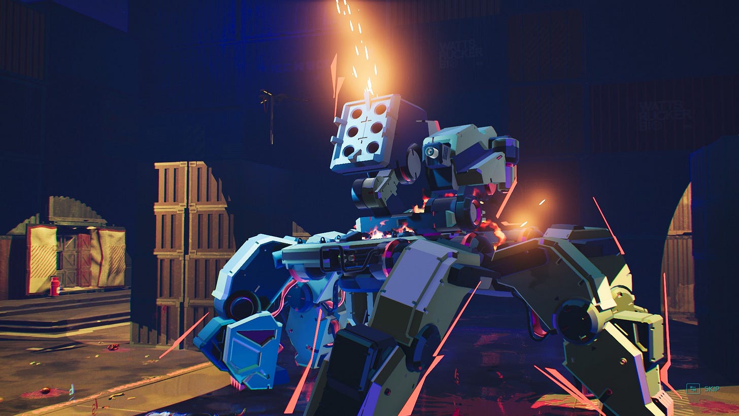 Each stage is made up of several combat arenas. You enter, fight all the enemies, and go on to the next one. Between each stage, you pick one of three. This could be anything from weapon enhancements, character upgrades or, the more common option, implants that give you special powers. Pick wisely, and build a killing machine powerful enough to take down anything in its path.