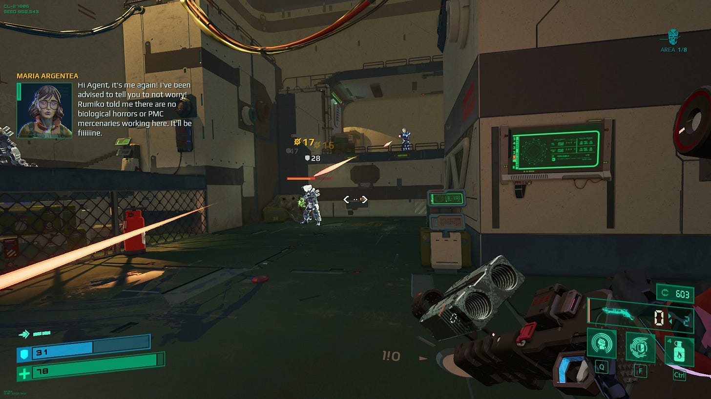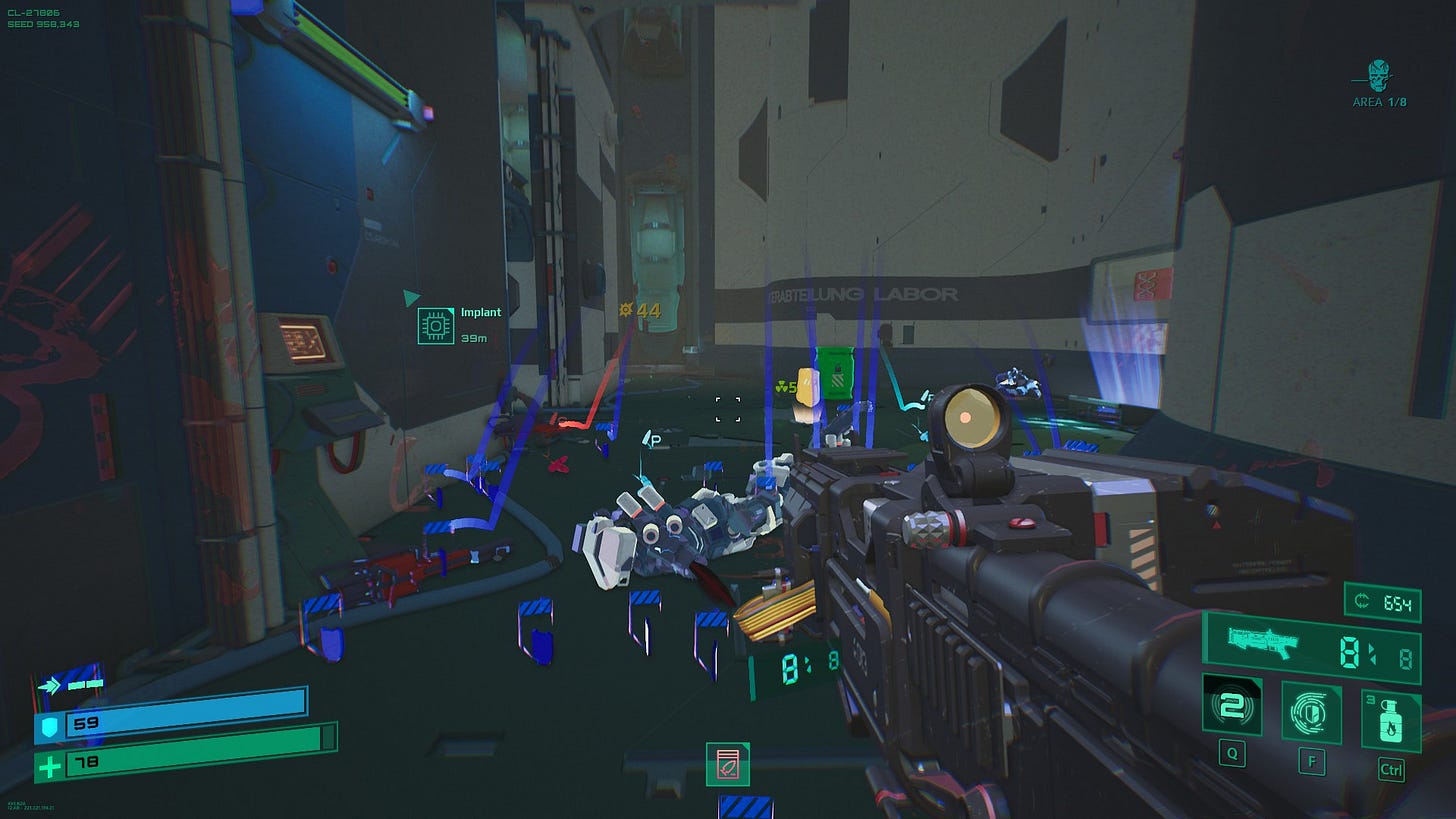 DEADLINK is a roguelite first person shooter. You’re a brain in a jar, and your mission is to run combat simulations where you send a robotic body to conduct corporate espionage by shooting the company into oblivion.
