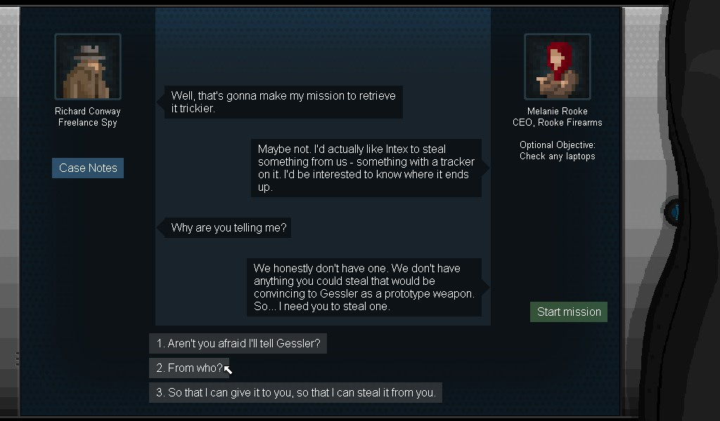 First we got Assault Spy, then Deadlink and now Gunpoint. Three games about corporate espionage. I swear I didn’t plan this. I don’t plan anything, unlike in Gunpoint, where you have to plan things. I promise it’s a lot more fun than what I just described.