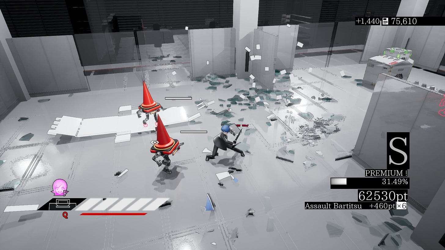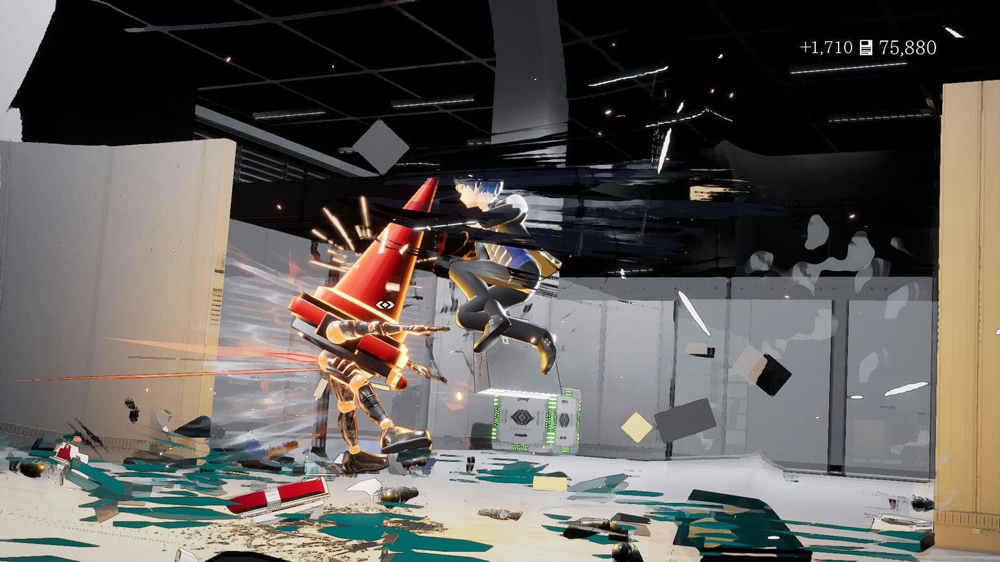 The game’s clean aesthetics and good use of special effects keeps the game from looking too boring. There are a lot of particle effects, cool animations and robots exploding to keep your attention, even if you’re fighting in an office in purgatory.