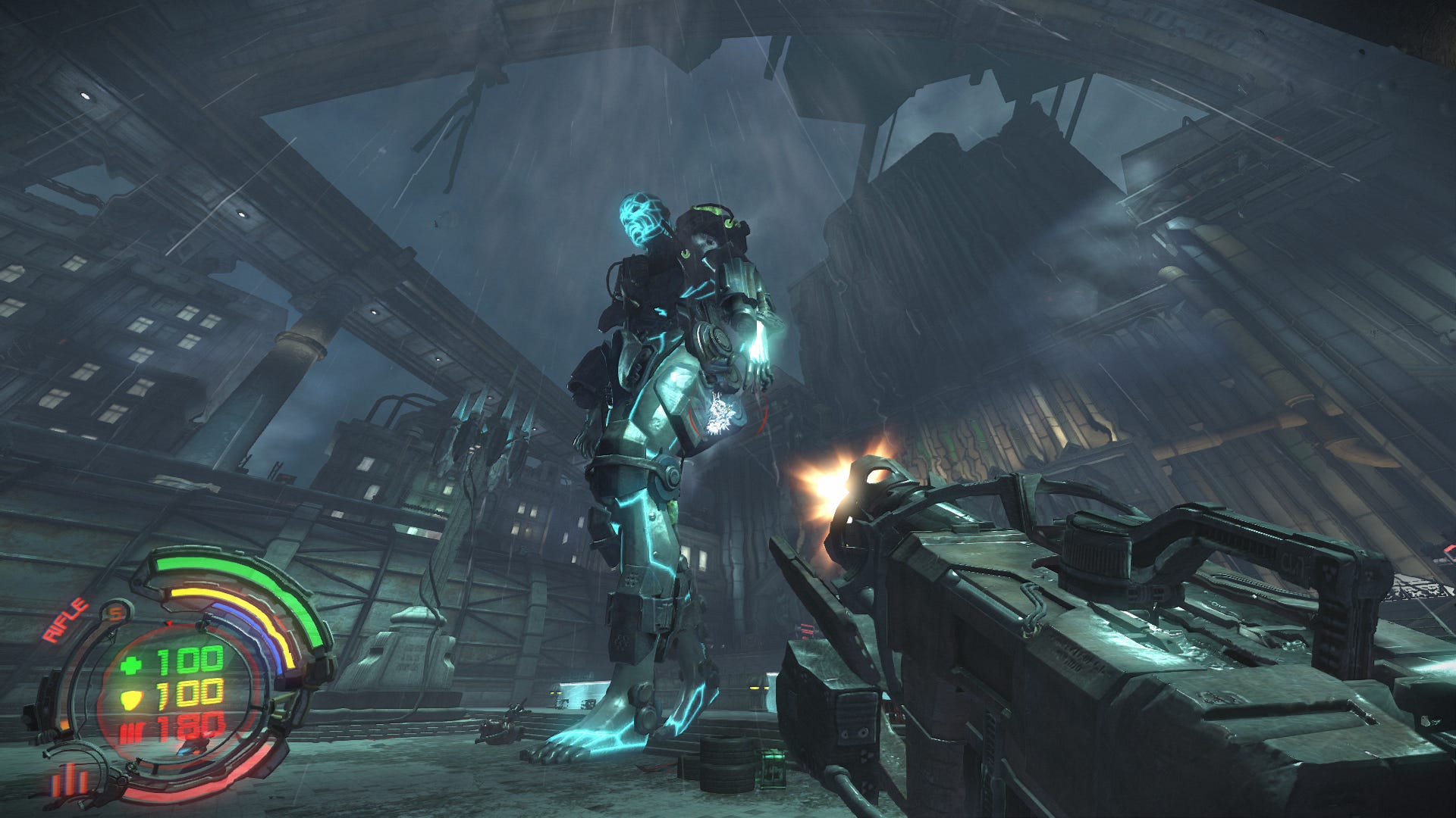 Not only do they feel pitiful to fire, they are pitiful in practice. Something that helps make your guns feel powerful, and has a direct impact on gameplay, is how much damage they do. Damage is a foreign concept to the guns in this game. You can unload three shotgun blasts directly into an enemy, at point-blank range, and they won’t feel anything. You can have the muzzle shoved halfway up their USB port, and they’d still shrug it off. It takes an entire gun store’s worth of ammo to take anything down, and it feels awful. Not only does it make your guns feel like they’re firing spit-balls, but it makes everything take forever to kill, making the game feel horrendously tedious.