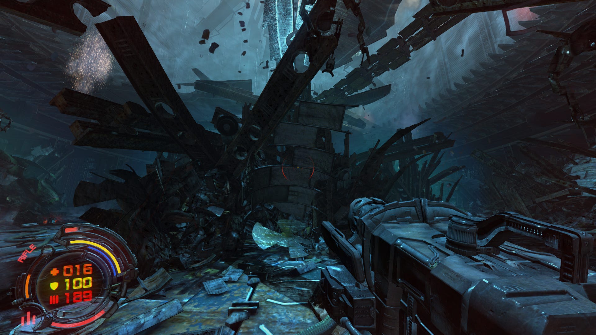 The level design is honestly pretty alright. Most arenas are built well, they give you enough room to move around while also giving you a few pieces of junk for cover, so not every fight is in a giant, empty room.